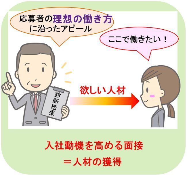 つまり、優秀な応募者に対して、面接で入社動機を高めるための的確な声かけをするための資料として使える、という訳です。