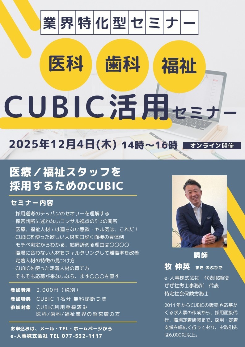 そこで今回、医科・歯科・福祉業界に特化したCUBIC活用セミナーを開催します。