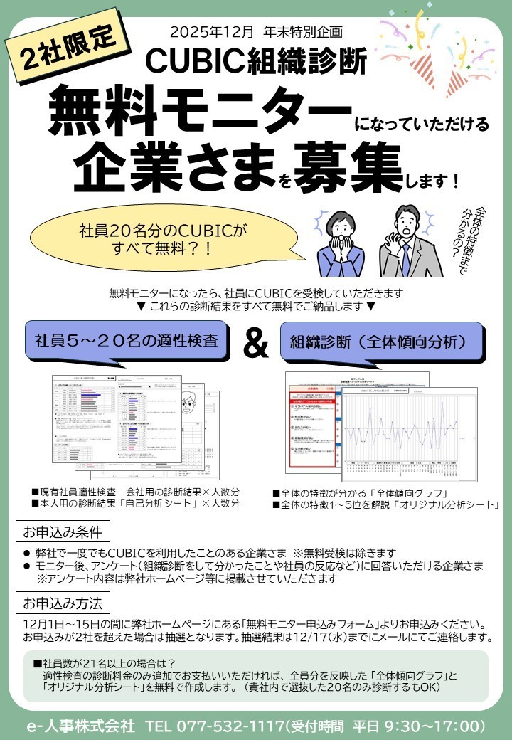 CUBIC組織診断の無料モニターになっていただける企業さまを募集します!