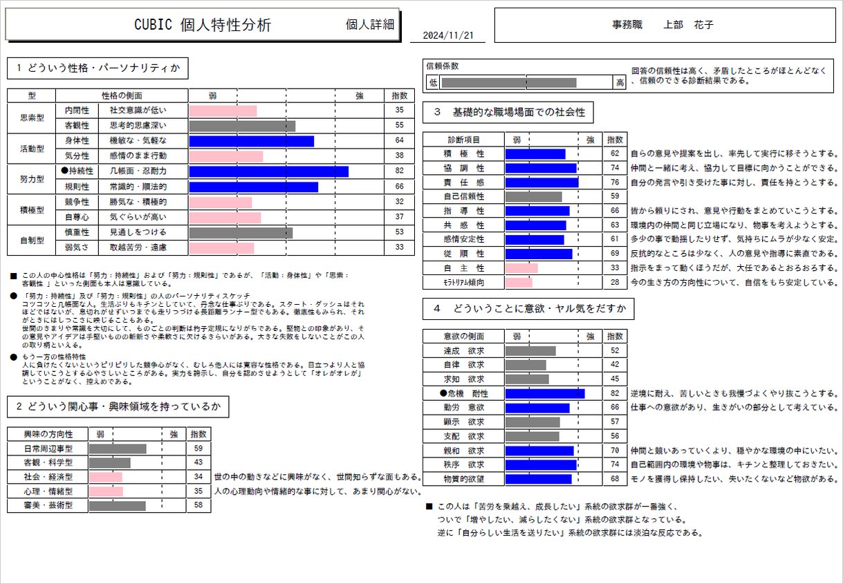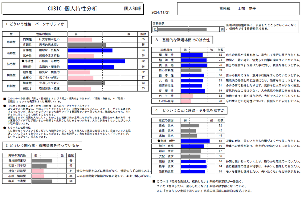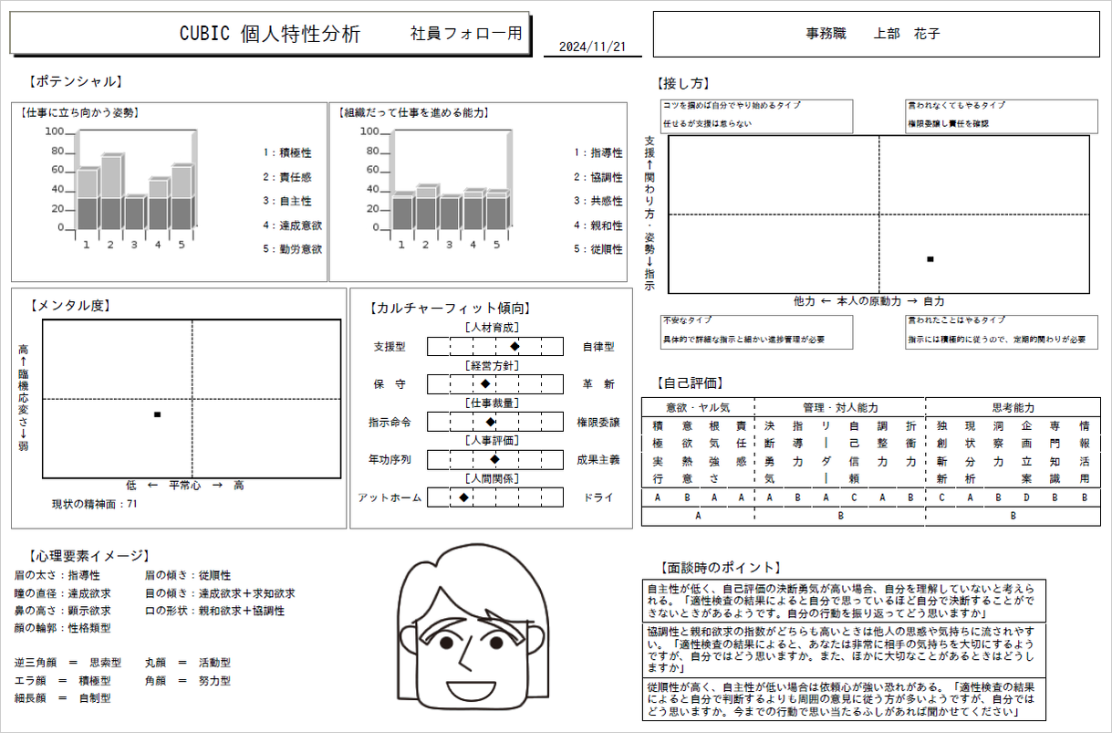 適性検査を実施済みに限り、下記診断結果を出力可能です。(追加料金あり)