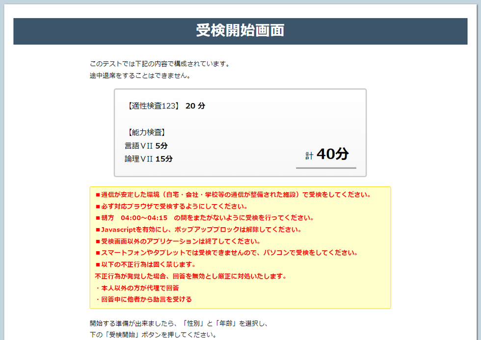 ・適性検査、能力検査…受検完了時