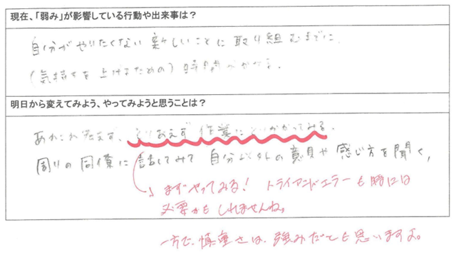 ただ単に「自分の弱みを自覚させる」だけでなく、むしろ「強みを活かすためにはどう行動したらいいか」にもフォーカスすることで、社員の意識や行動が変わっていきます。