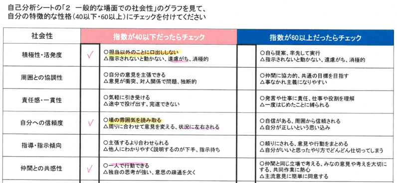 弊社にて自己分析シートを出力します。(WEB受検の場合は操作方法をご案内いたします。)